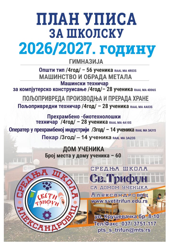 - Из прве бразде до златног века – 100 година Средње школе „Свети Трифун“ са домом ученика